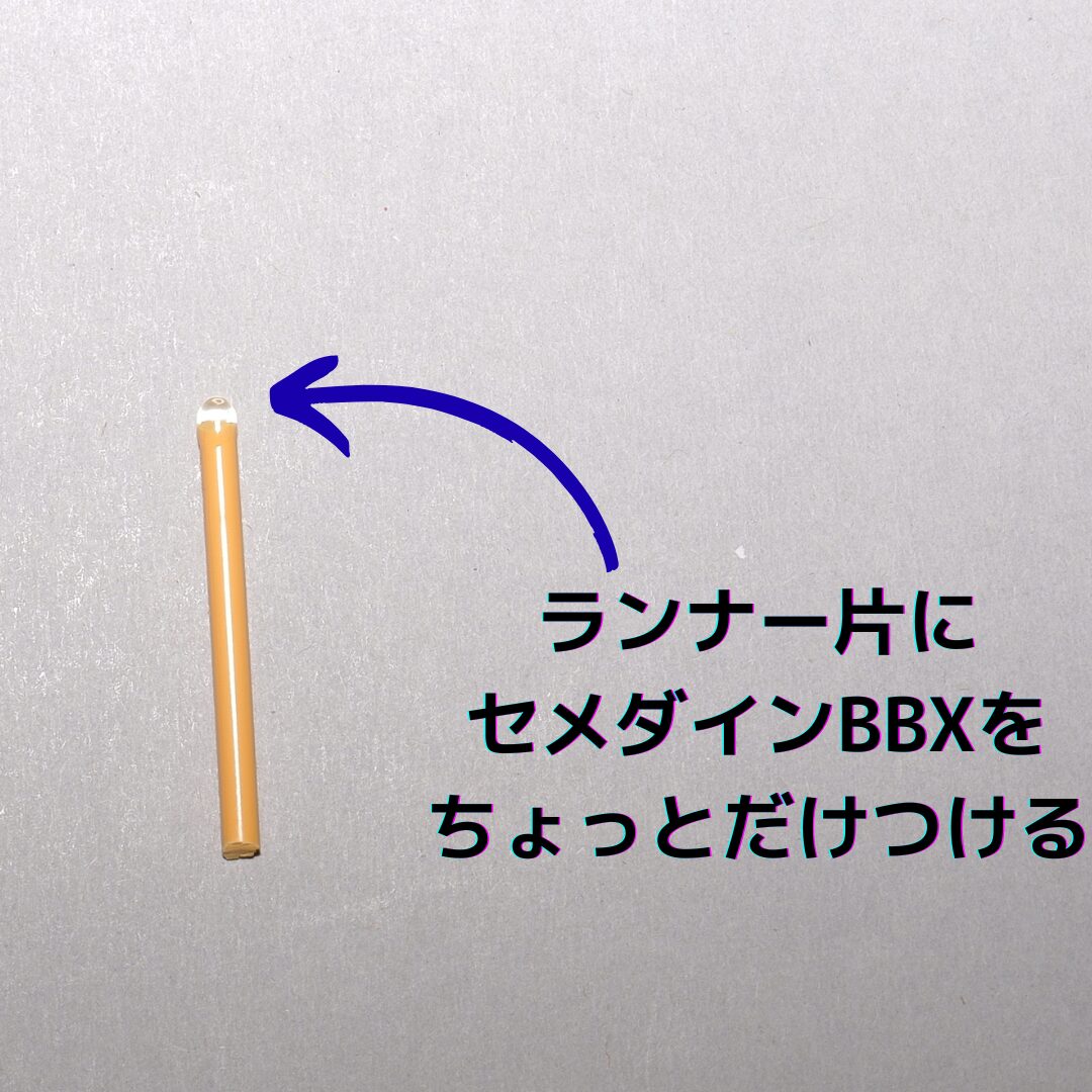 まず、適当なランナー片を用意して、先っちょにBBXをちょっとだけつけてください